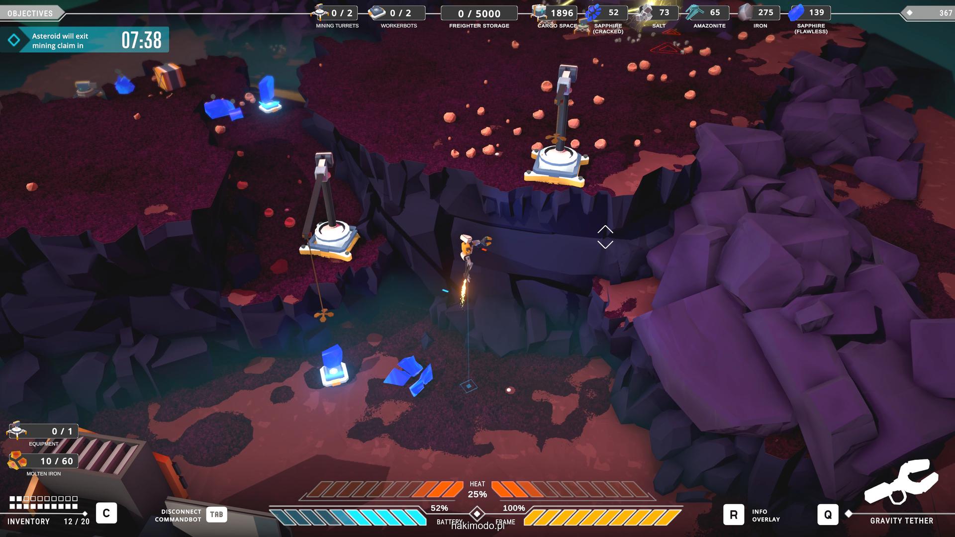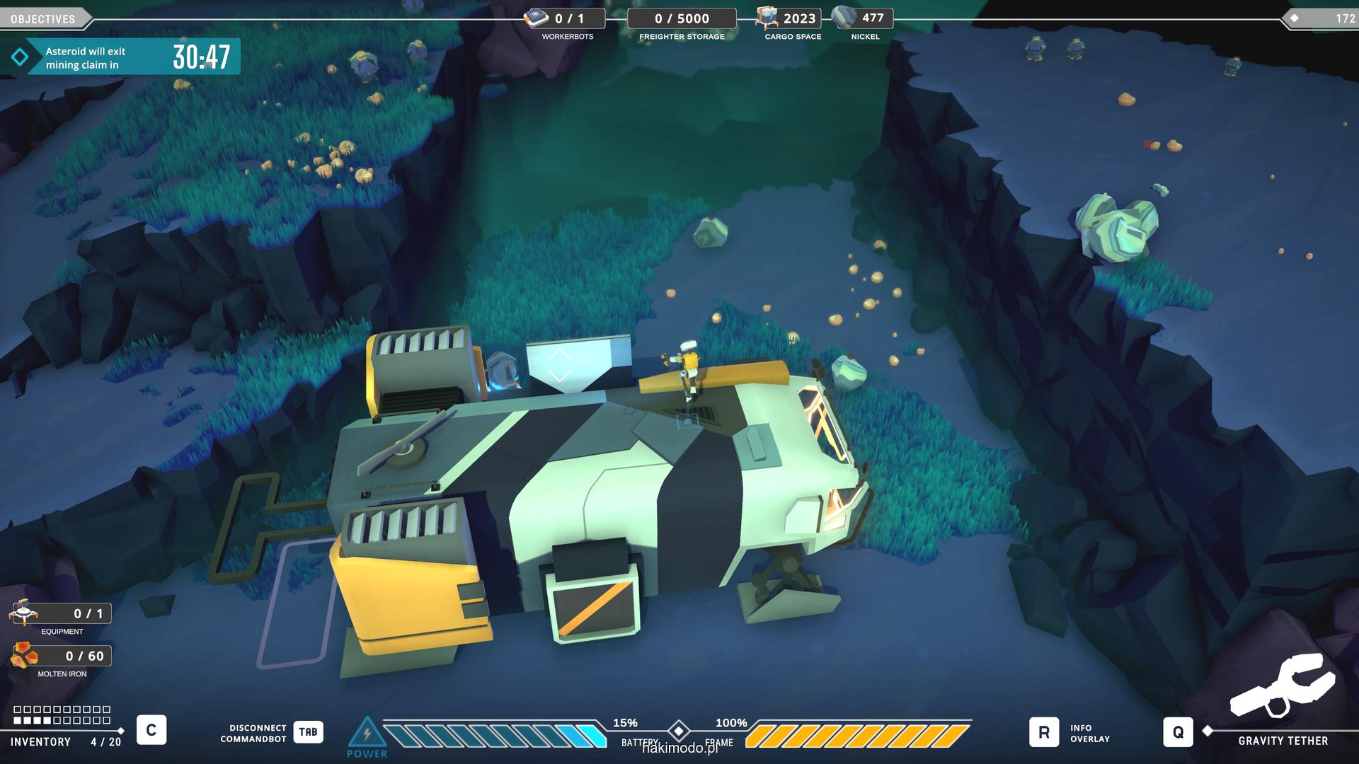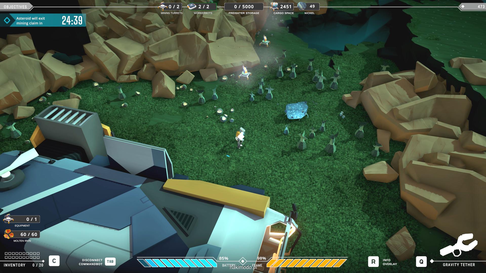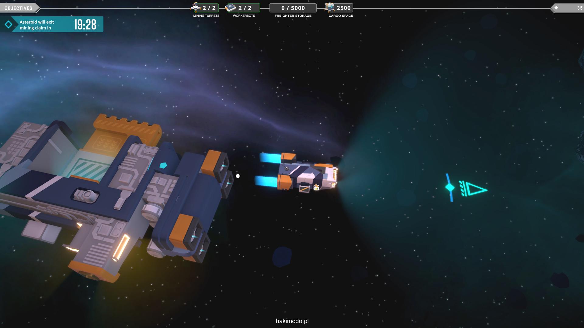 Naszym głównym celem jest zebranie jak największej ilości surowców w dostępnym czasie i przetransportowanie ich do ładowni wahadłowca. Warto zatem zacząć od najbardziej wartościowych minerałów. Pomaga w tym magnetyczny chwytak, którym przeciągamy obiekty lub wyrzucamy je, obracając się i nadając im pęd. Po dostarczeniu surowca w pobliże ładowni zostaje on automatycznie wciągnięty do środka.