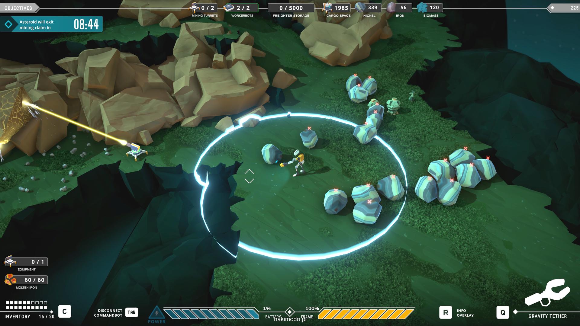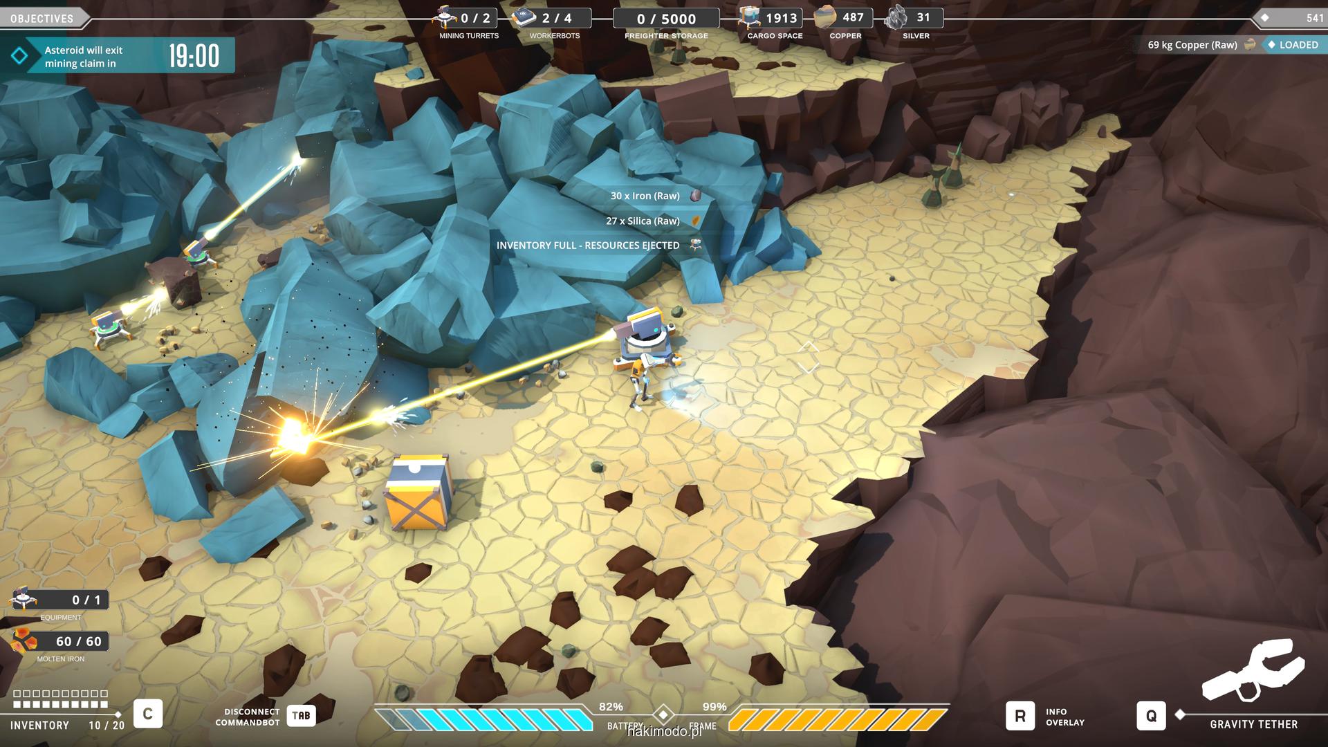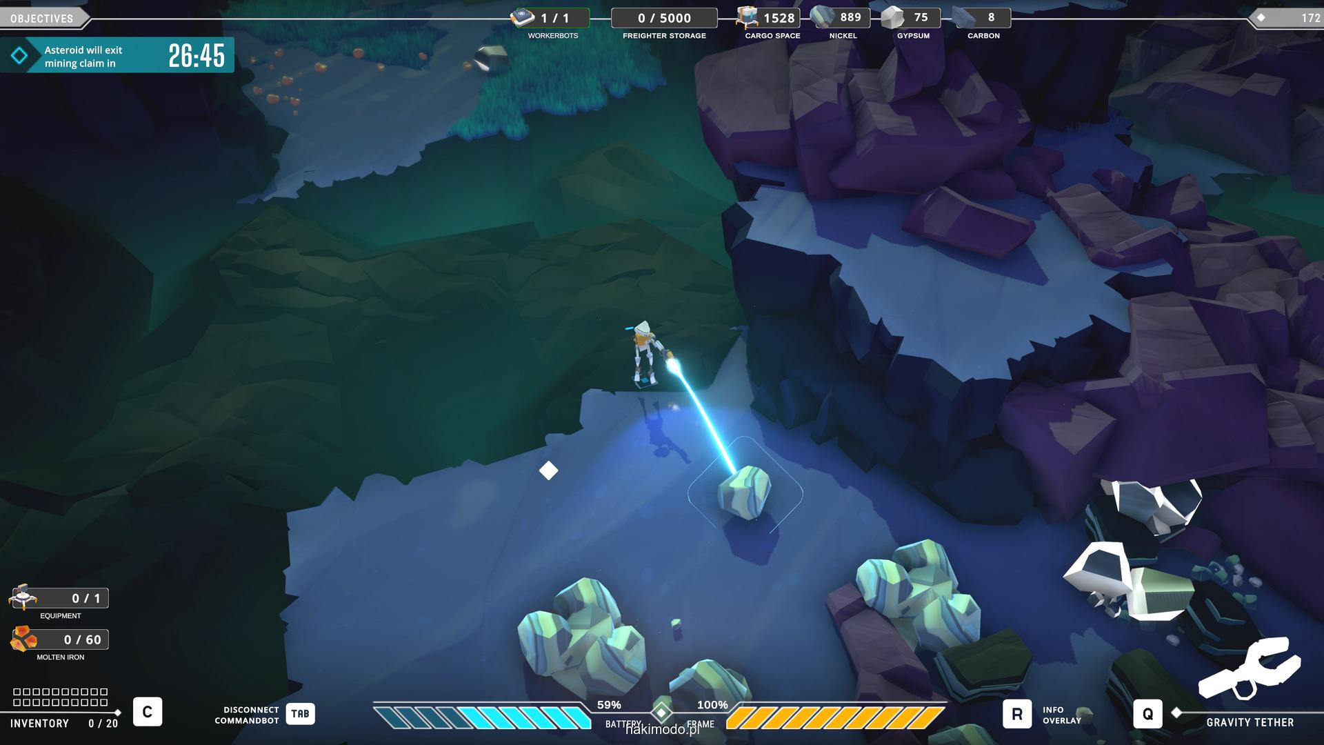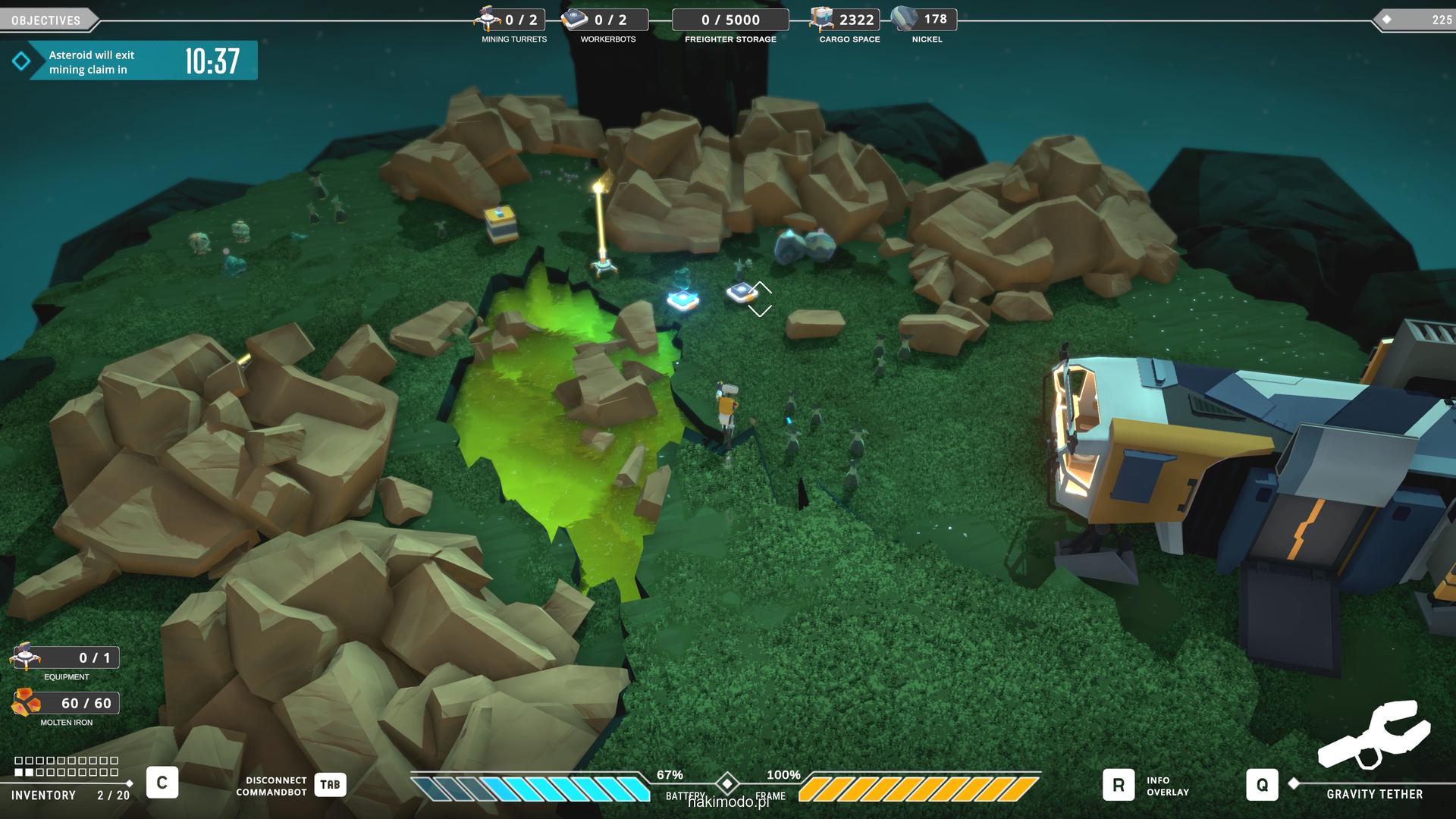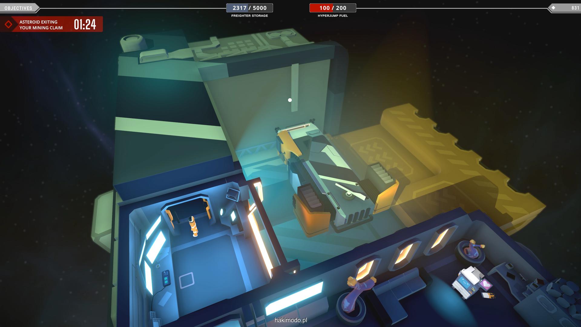 Naszym głównym celem jest zebranie jak największej ilości surowców w dostępnym czasie i przetransportowanie ich do ładowni wahadłowca. Warto zatem zacząć od najbardziej wartościowych minerałów. Pomaga w tym magnetyczny chwytak, którym przeciągamy obiekty lub wyrzucamy je, obracając się i nadając im pęd. Po dostarczeniu surowca w pobliże ładowni zostaje on automatycznie wciągnięty do środka.
