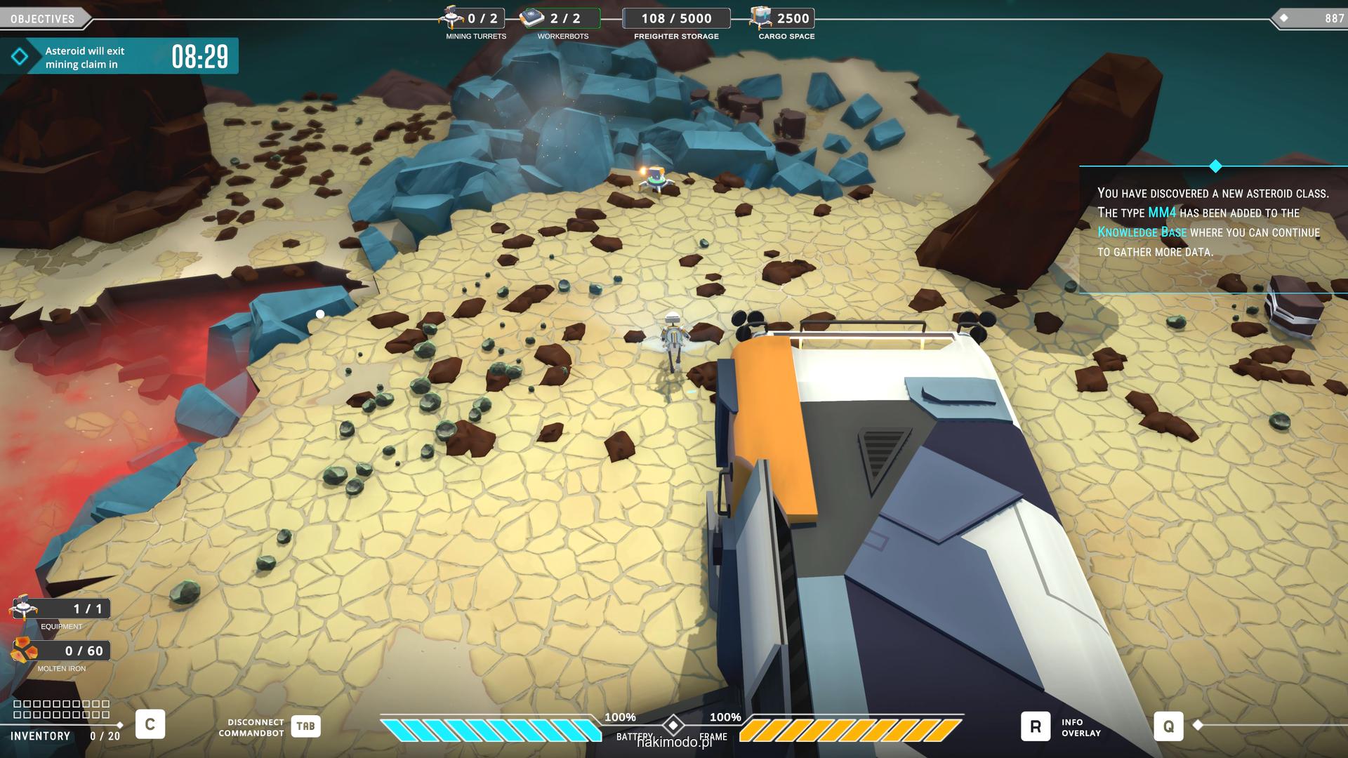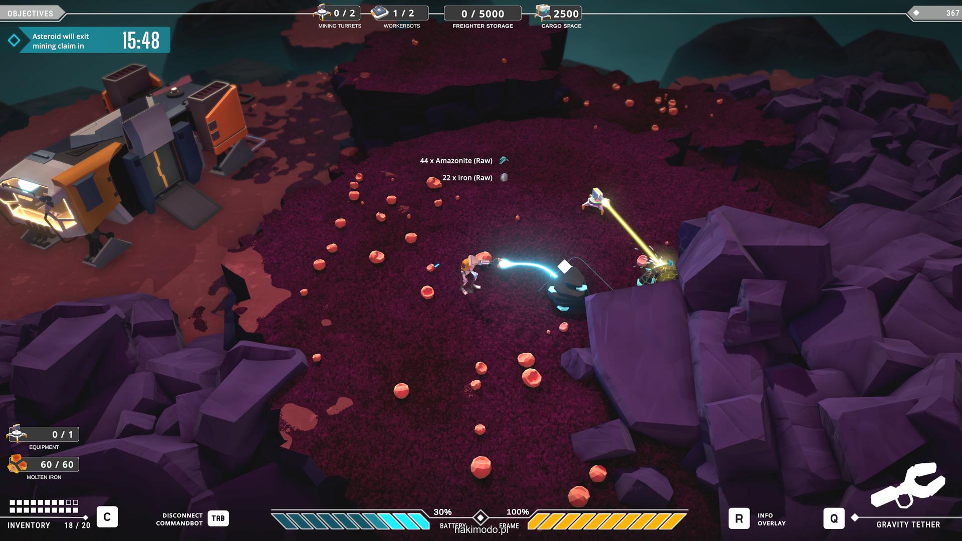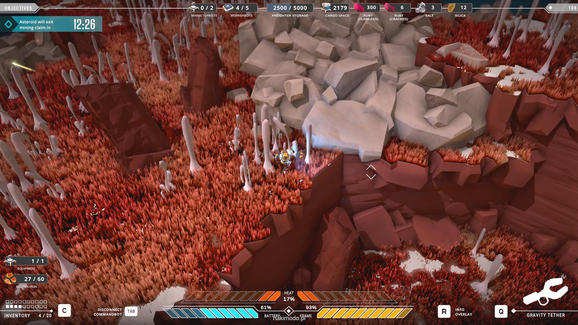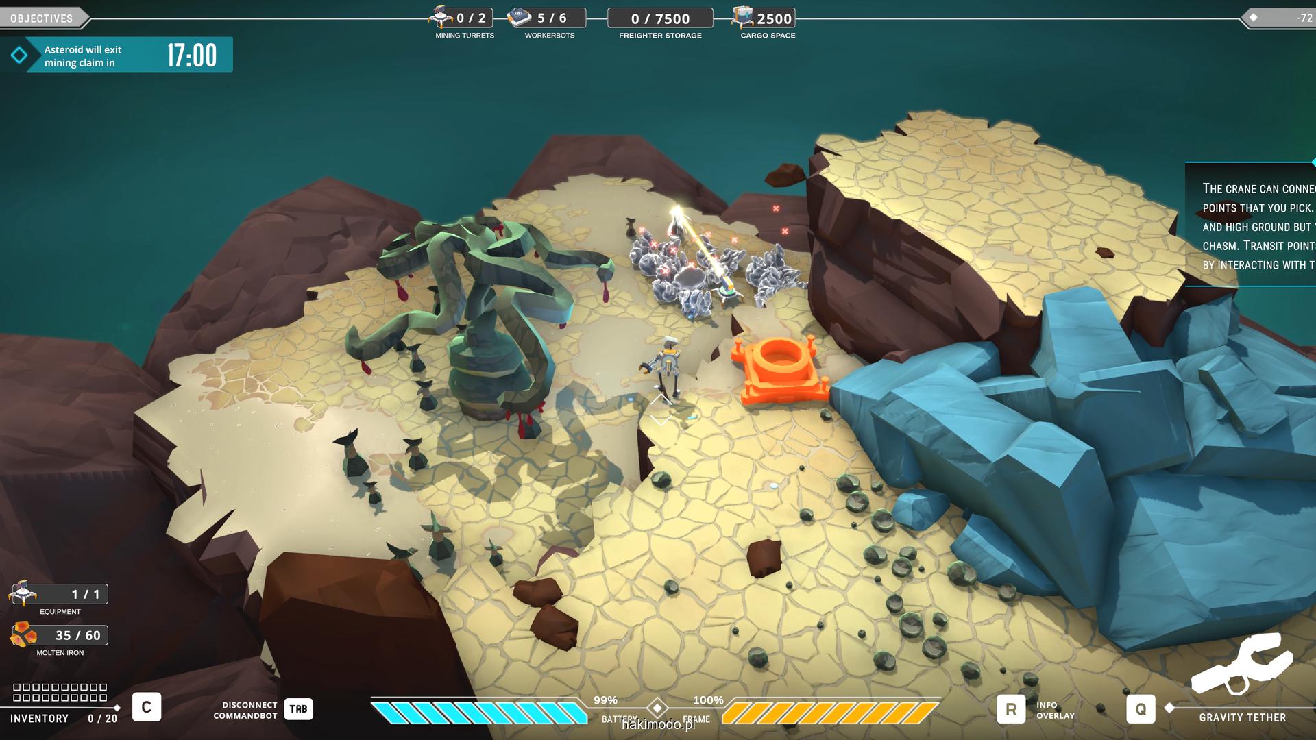 Naszym głównym celem jest zebranie jak największej ilości surowców w dostępnym czasie i przetransportowanie ich do ładowni wahadłowca. Warto zatem zacząć od najbardziej wartościowych minerałów. Pomaga w tym magnetyczny chwytak, którym przeciągamy obiekty lub wyrzucamy je, obracając się i nadając im pęd. Po dostarczeniu surowca w pobliże ładowni zostaje on automatycznie wciągnięty do środka.