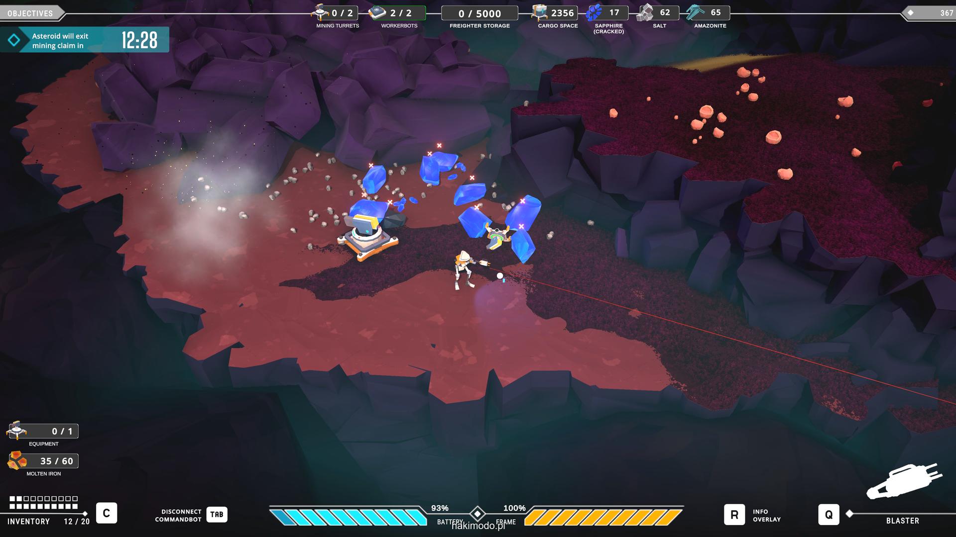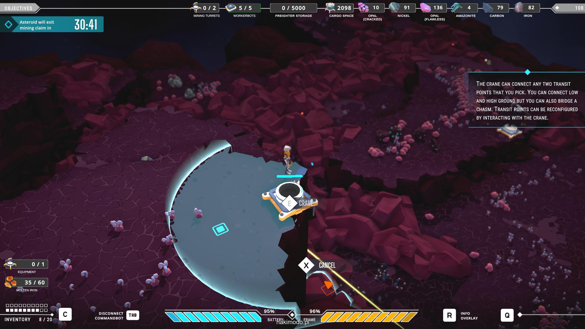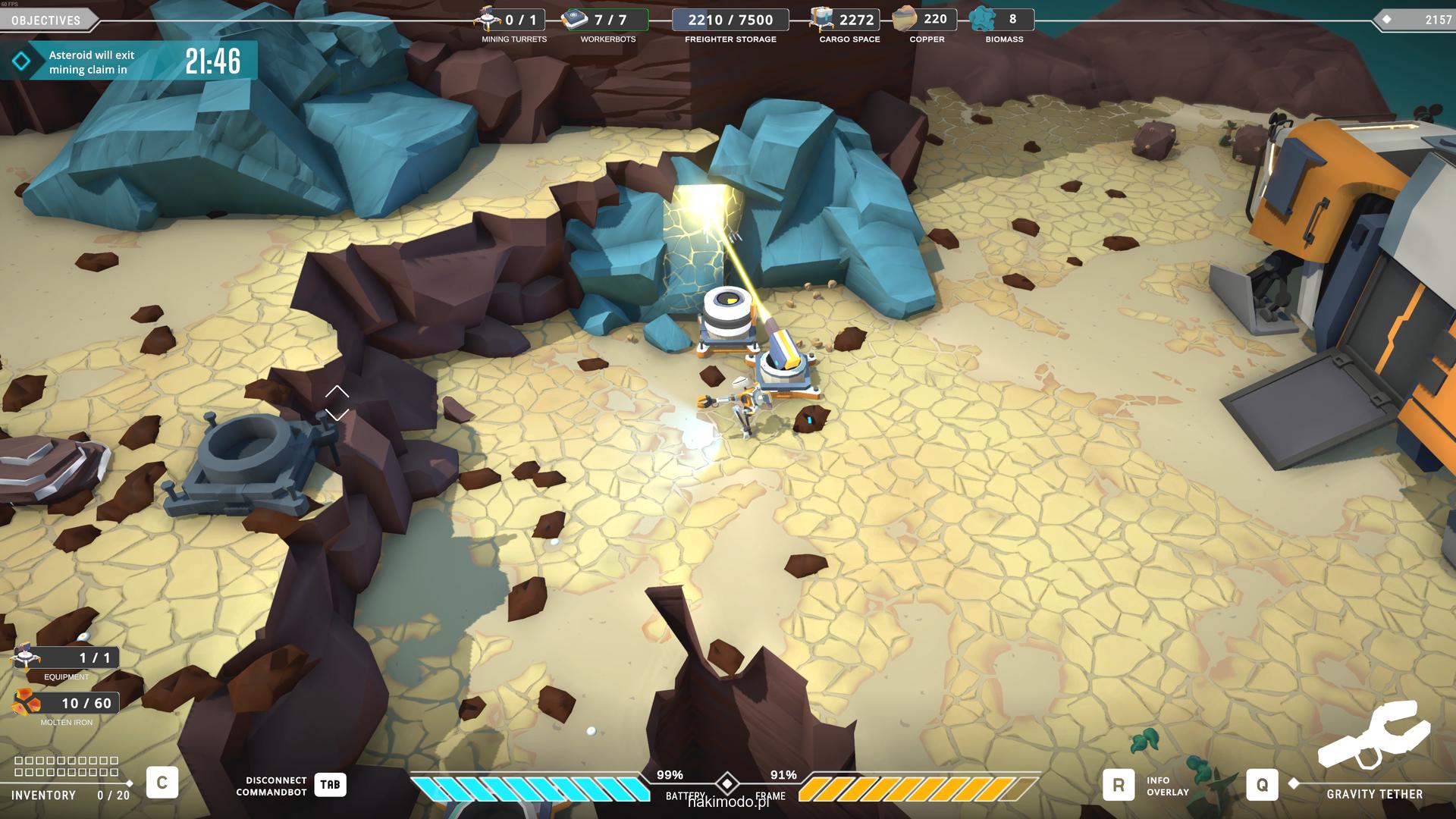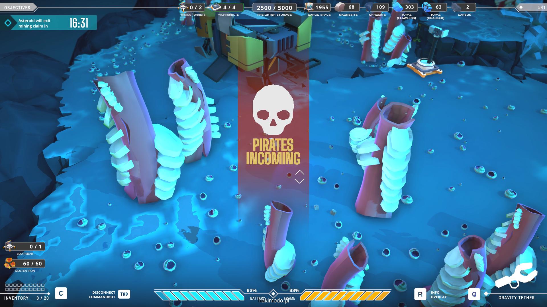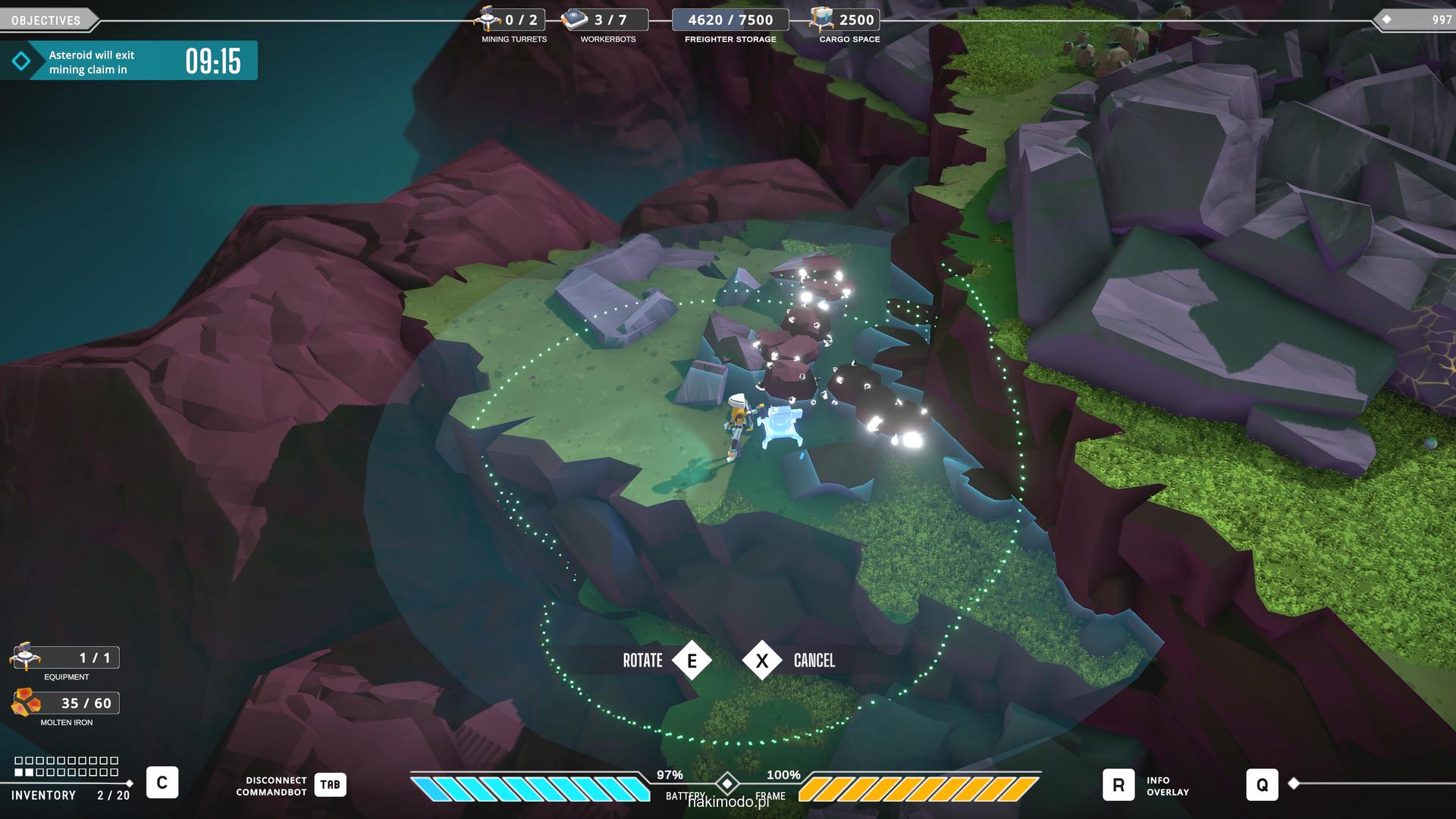 Naszym głównym celem jest zebranie jak największej ilości surowców w dostępnym czasie i przetransportowanie ich do ładowni wahadłowca. Warto zatem zacząć od najbardziej wartościowych minerałów. Pomaga w tym magnetyczny chwytak, którym przeciągamy obiekty lub wyrzucamy je, obracając się i nadając im pęd. Po dostarczeniu surowca w pobliże ładowni zostaje on automatycznie wciągnięty do środka.