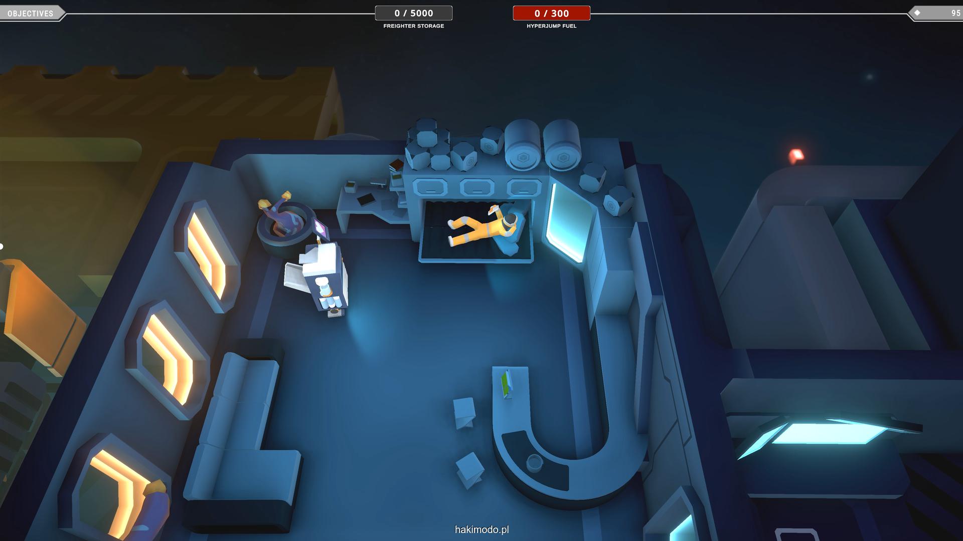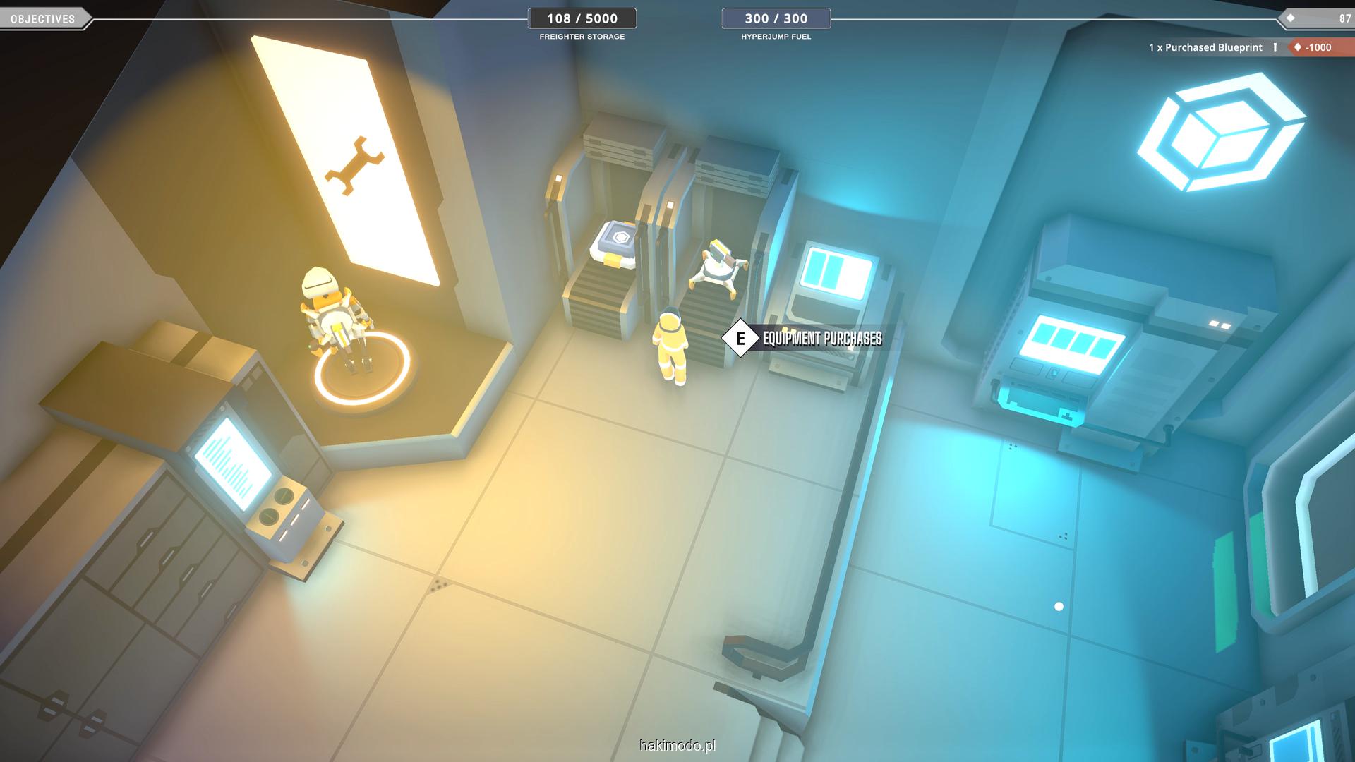 Wykonywaną pracę możemy w części zautomatyzować kupując na stacji roboty transportowe, które samodzielnie wykryją oznaczone surowce i przetransportują je do ładowni. Wystarczy oznaczyć dany przedmiot z użyciem klawisza “E” lub też wygodniej przytrzymać ten przycisk by zaznaczyć wokół naszej postaci wszystkie transportowalne towary w okolicy.