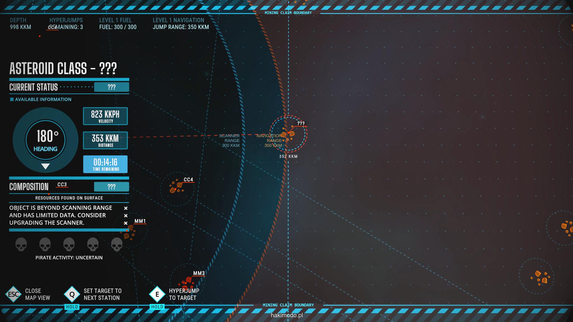 Po dotarciu na asteroidę lądujemy w jedynym dostępnym punkcie. Warto wcześniej przyjrzeć się powierzchni, by wstępnie zaplanować trasę celem pozyskania najcenniejszych surowców. Asteroidy generowane są proceduralnie, więc układ terenu i rozmieszczenie minerałów za każdym razem będą inne.