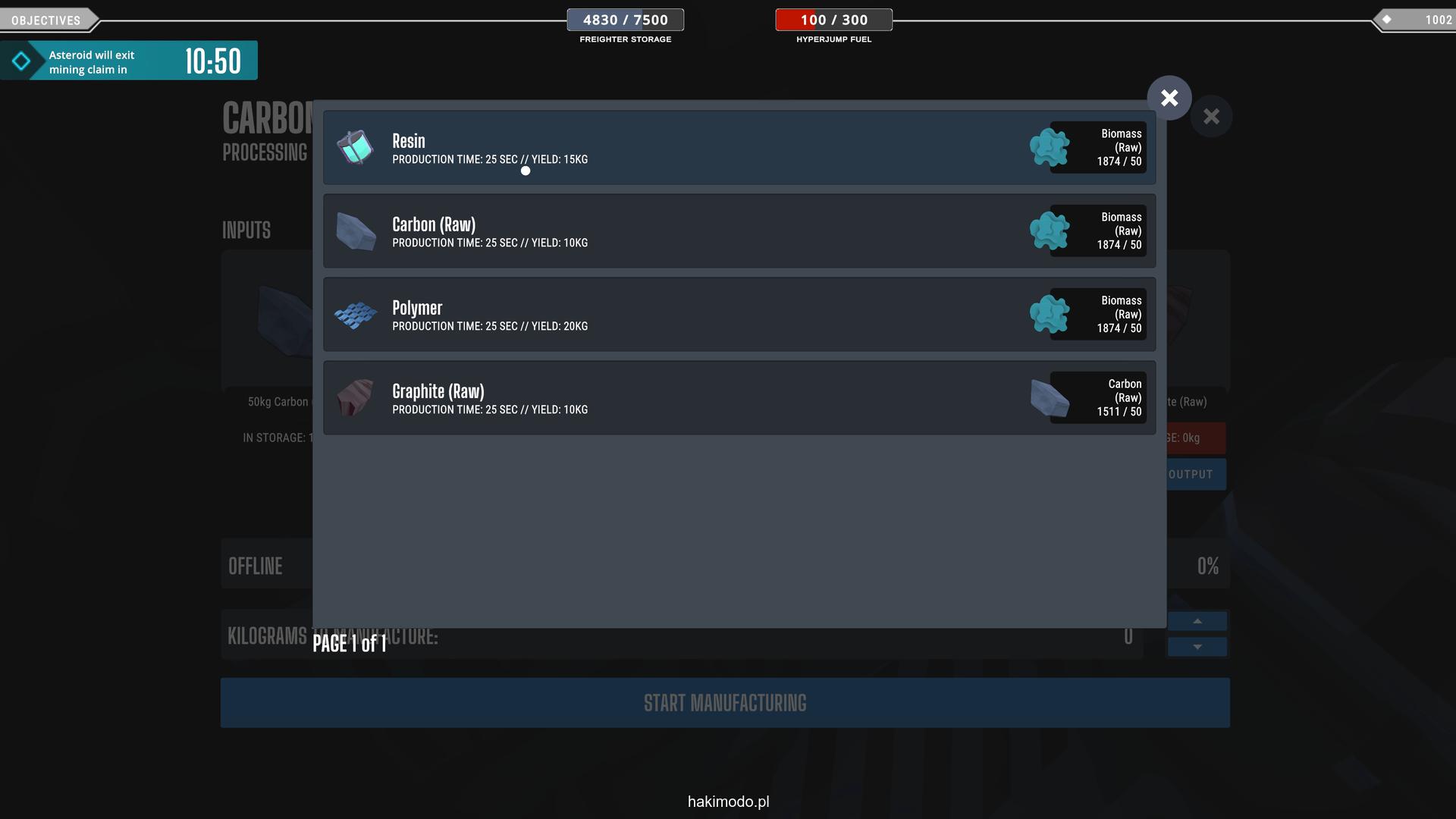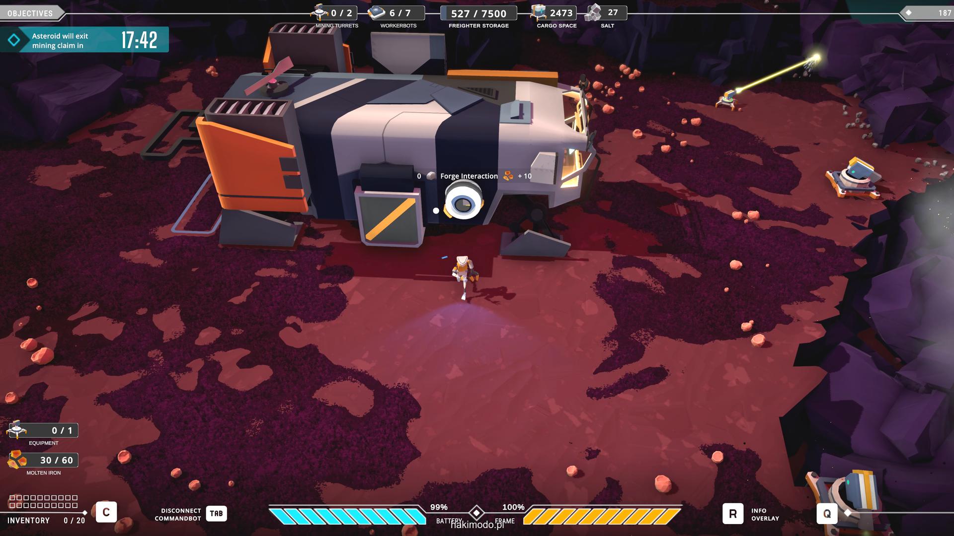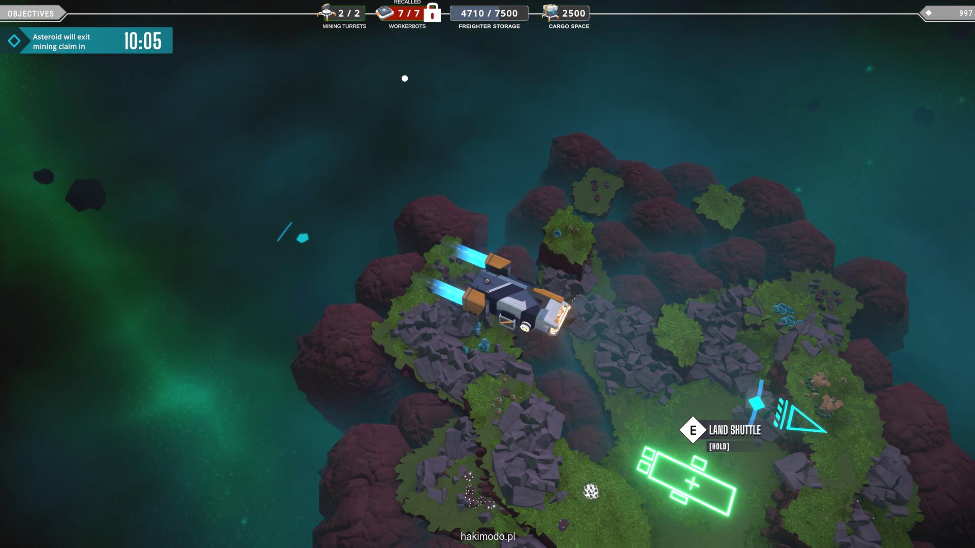 Wahadłowiec ma ograniczoną pojemność (2500 jednostek), więc przy większej ilości surowców trzeba wyrzucić nadmiar, wrócić na orbitę do naszego statku, rozładować ładownię i przylecieć po resztę pozostawionego urobku. Ważne jest też, by nie zapomnieć o zabraniu robotów transportowych czy wieżyczek – jeśli zostaną na asteroidzie, zostaną bezpowrotnie utracone co będzie wiązać się z koniecznością poniesienia dodatkowego wydatku na zakup nowych egzemplarzy na stacji.