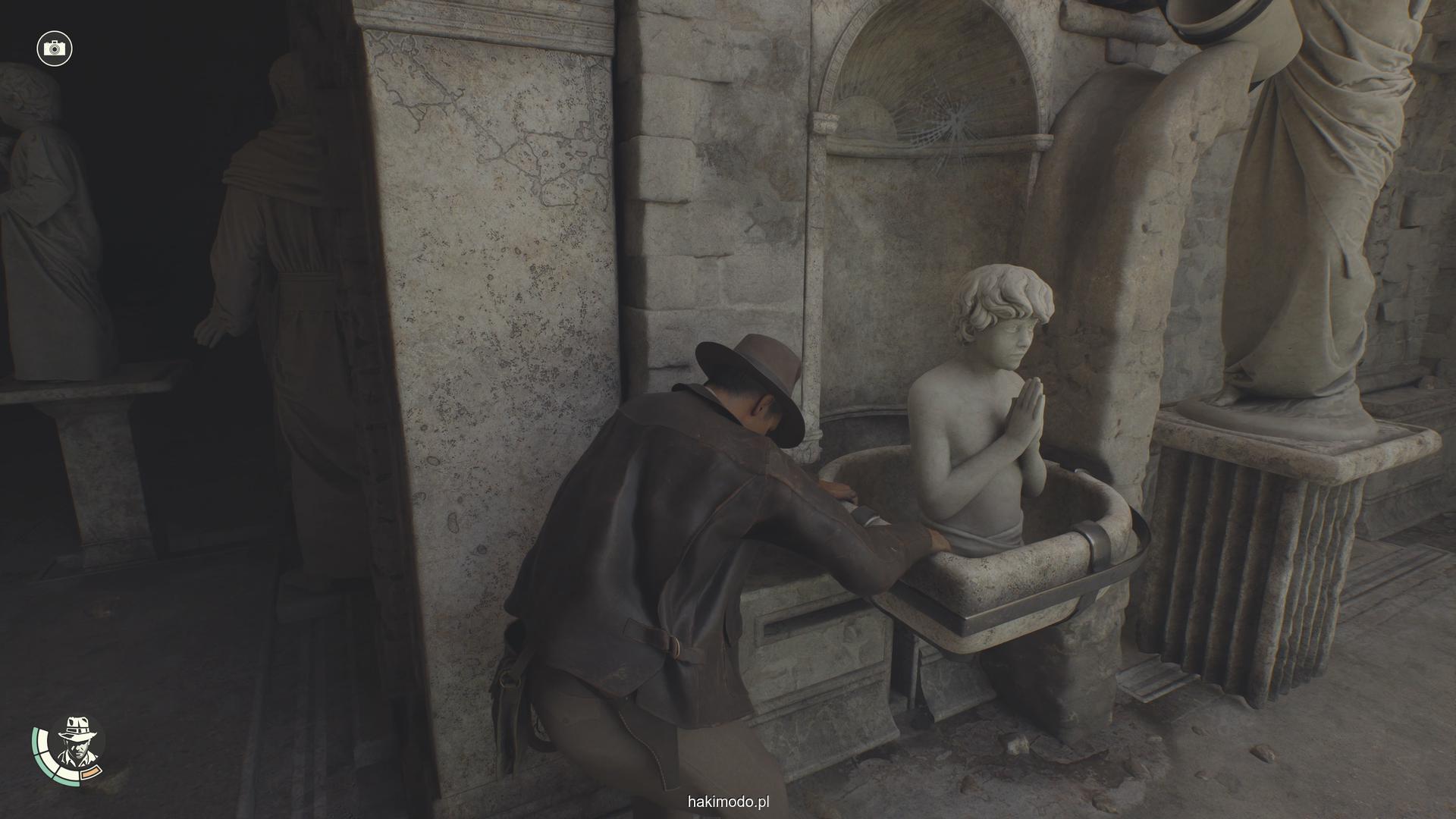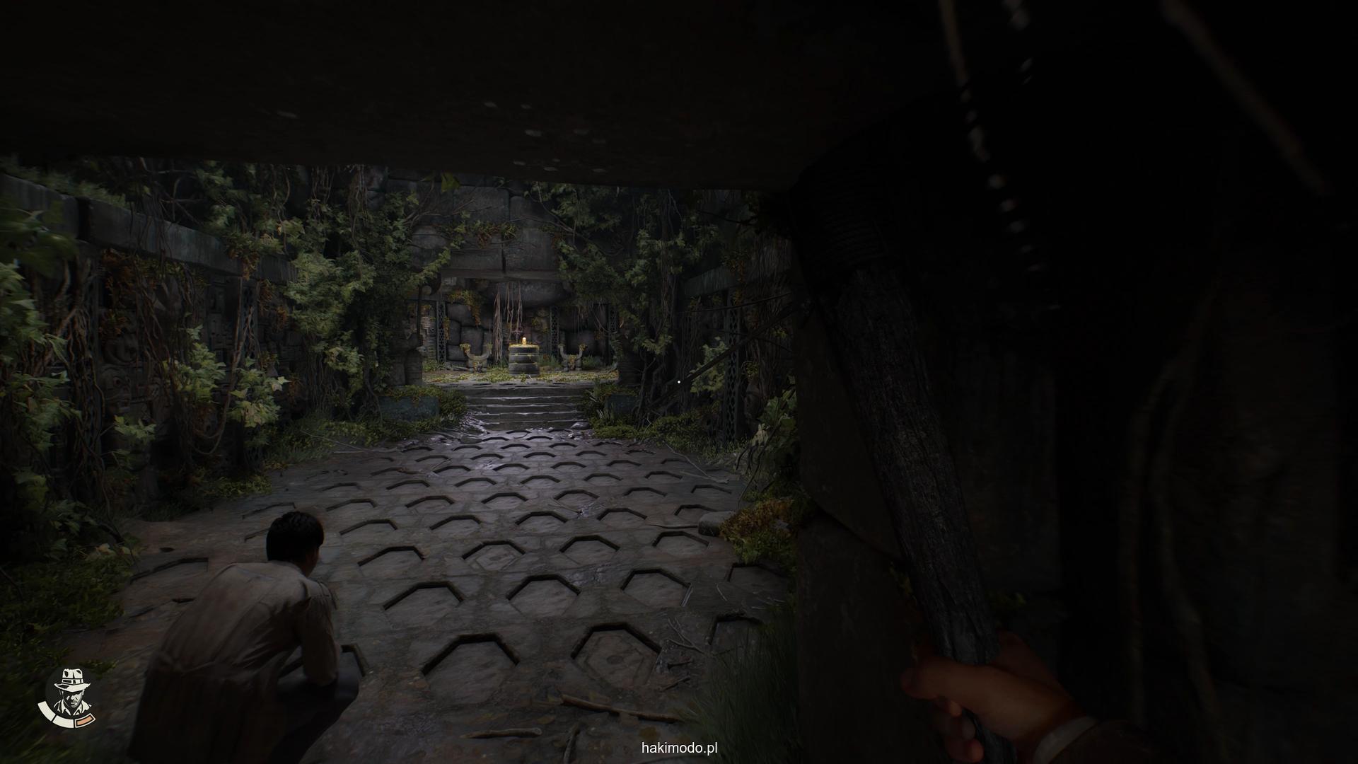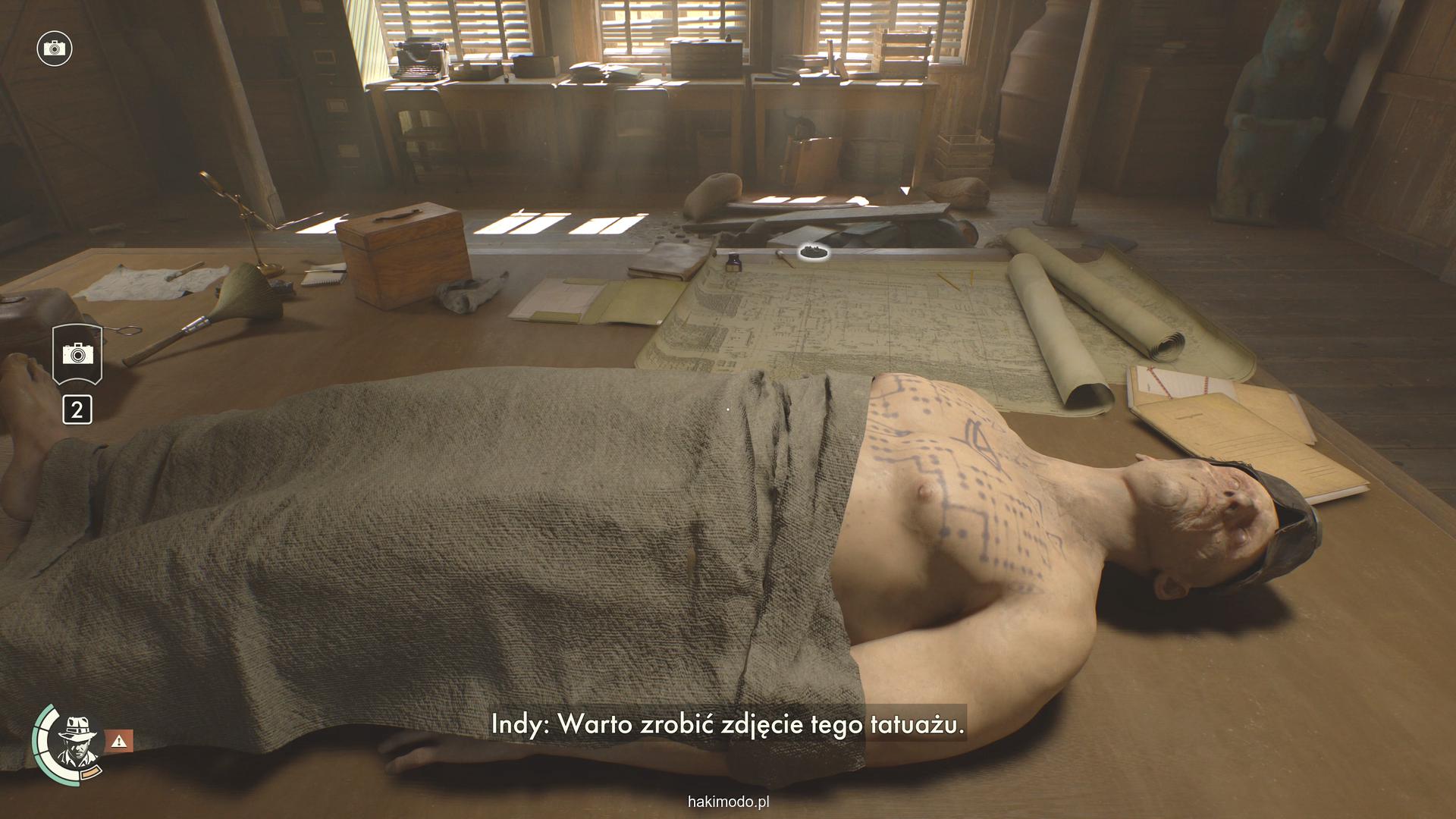 Gra dosyć szybko doposaża nas w ekwipunek łowcy przygód: zyskujemy nieodłączny atut Indiego: bicz, zapalniczkę i aparat oraz pistolet. Przeznaczenie zapalniczki łatwo jest odgadnąć: będzie w stanie rozjaśnić mrok podziemnych komnat i korytarzy gdyż rozgrywka naprawdę często toczyć się będzie w mroku. To też spowoduje, że odblokowany zostanie dostęp do nowych lokacji do których wcześniej nie mieliśmy dostępu. Większość akcji toczyć się będzie w zaciemnieniu i niekiedy ciężko jest zauważyć elementy otoczenia. Całe szczęście te ważniejsze gra podświetla i po najechaniu na nie myszką pojawia się komunikat o możliwej interakcji. Aparat służy naszemu bohaterowi do robienia zdjęć a z funkcją przybliżania pozwala dokładniej rozejrzeć się po okolicy. Indy jest pasjonatem fotografii i w trakcie całej rozgrywki co chwila znajdziemy miejsce które ten chce uwiecznić. Zrobienie zdjęcia takiej miejscówce daje naszemu bohaterowi punkty doświadczenia a te służą do odblokowania umiejętności specjalnych. Zdjęcia zwykle muszą być zrobione pod specjalnym kątem więc niekiedy trzeba będzie się dobrze ułożyć ale to łatwo jest odczytać po obramówce przy celowaniu aparatem.