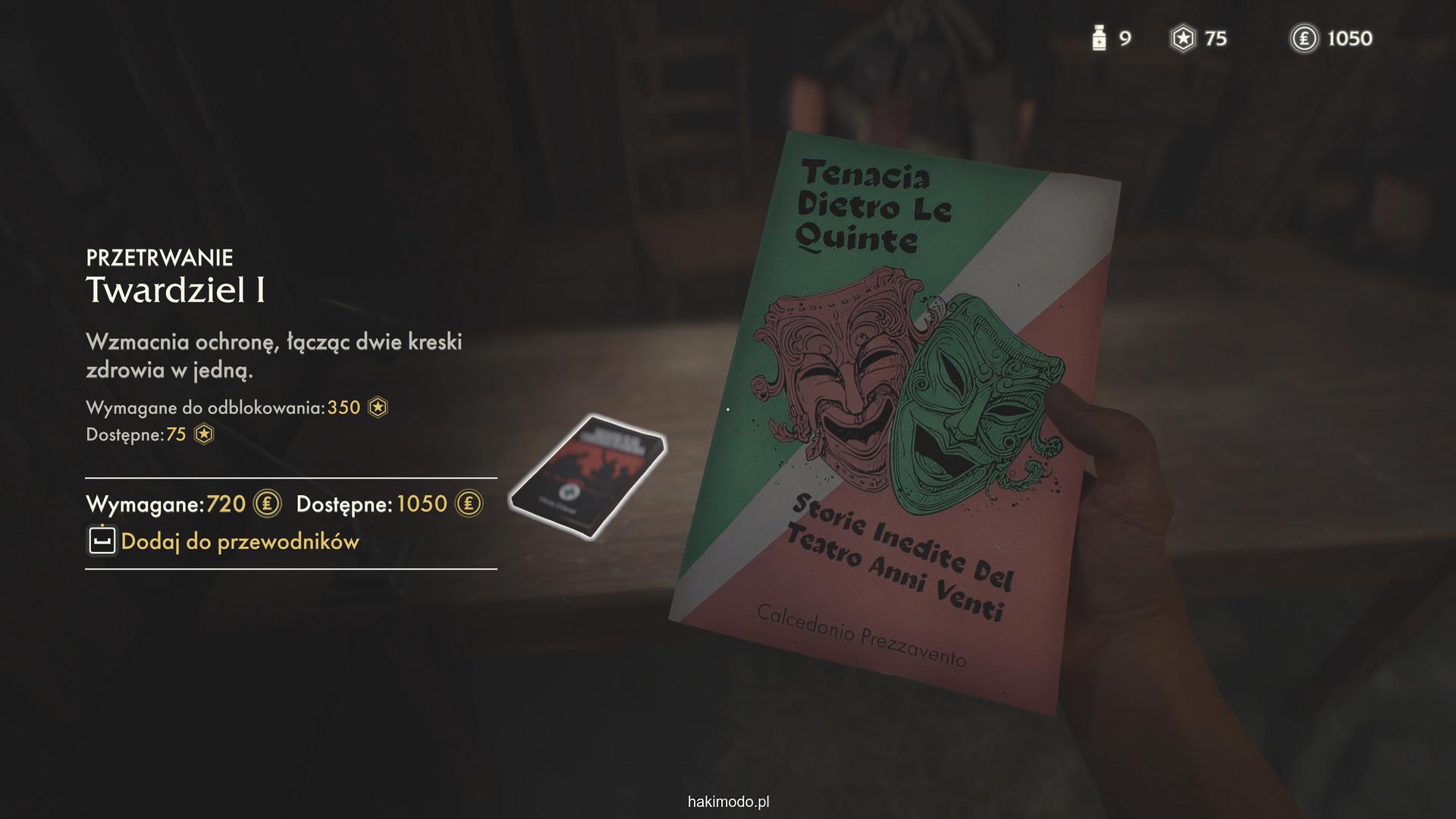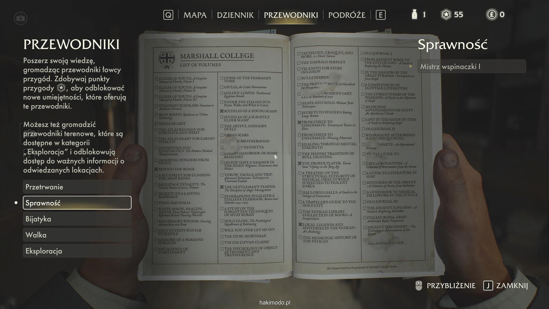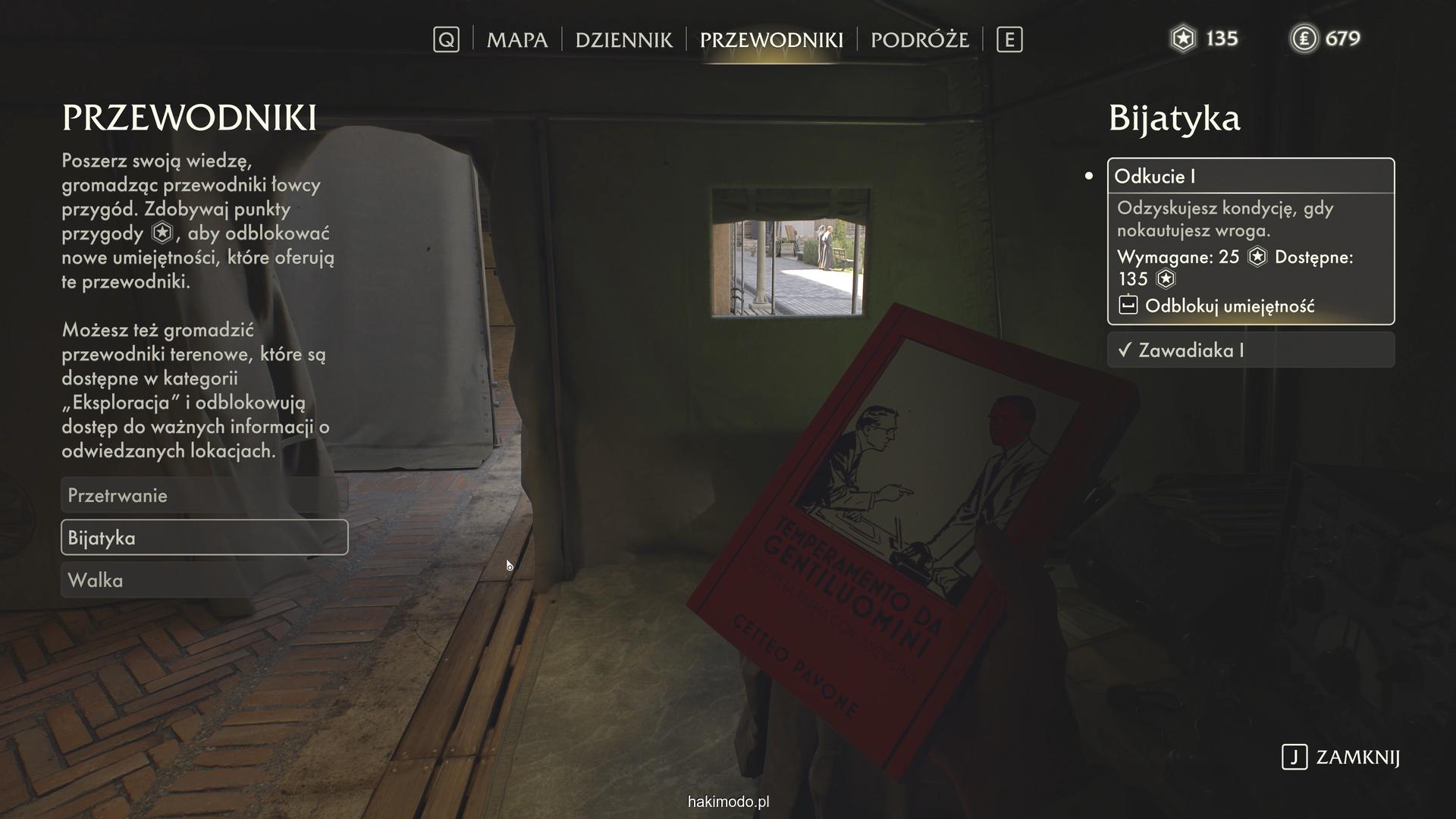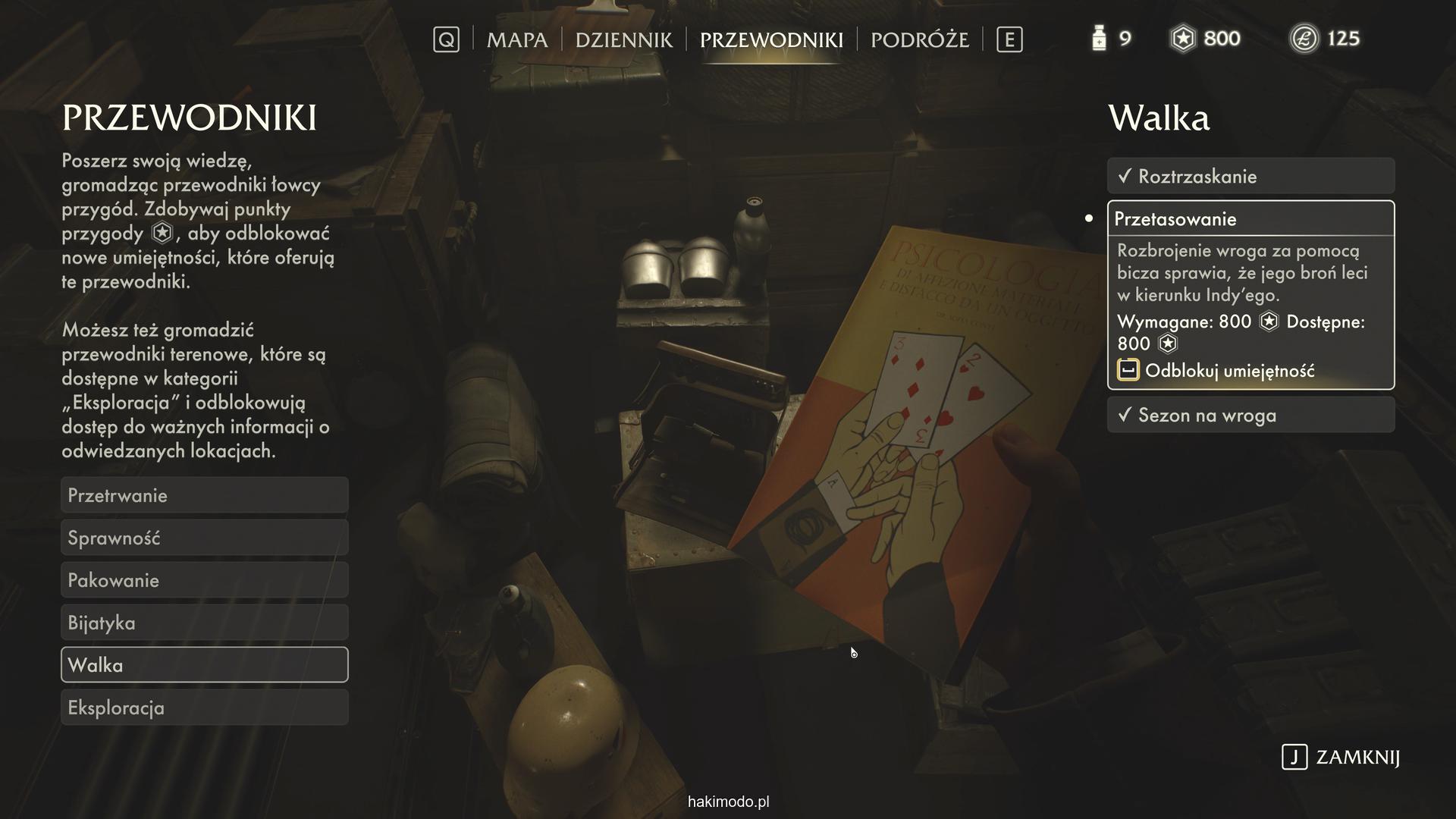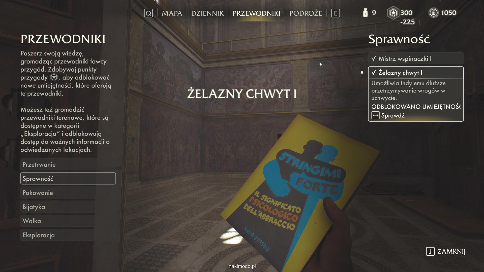 Jak już wspominałem postać rozwiązując zagadki czy też fotografując otoczenie potrafi gromadzić doświadczenie. Po uzbieraniu odpowiedniej ilości punktów będziemy mogli na stałe odblokować umiejętność specjalną, która może znacząco ułatwić prowadzoną rozgrywkę. Nowe umiejętności możemy pozyskać realizując dostępne misje czy też np. zbierając specjalne broszury – zwykle są one poukrywane w jakichś miejscach ale często możemy je znaleźć po odblokowaniu dostępu do danej lokacji, rozwiązując opcjonalną zagadkę. W grze nazwane zostały jako “Przewodniki” i pogrupowane zostały na kilka sekcji. Zwiększają wytrzymałość bohatera w różnych kategoriach oraz ułatwiają samą grę zwiększając np. liczbę możliwych do przechowywania przedmiotów, wydajność w walce czy też ilość zdrowia postaci bądź jego regenerację.