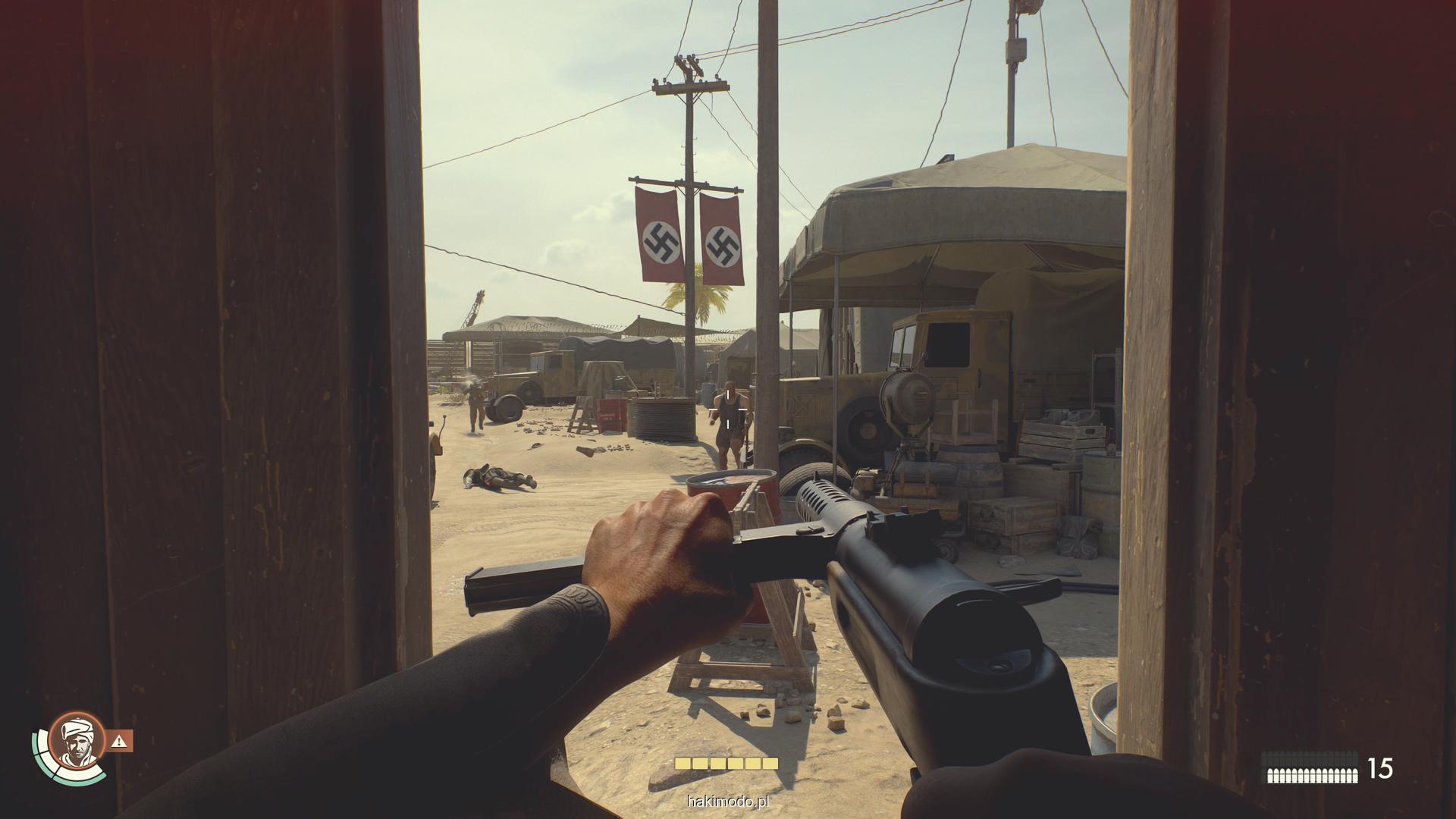 Walka w dużej mierze toczyć się będzie w zwarciu, na gołe pięści czy też wykorzystując możliwe do pozyskania elementy otoczenia. Butelka, drewniana pałka czy też znaleziona nieopodal łopata doskonale sprawdzają się jako oręż wybijając napotkanym Niemcom głupoty z głowy. Ostre “dzyń” i kolejny szwab leży nieprzytomny na ziemi!