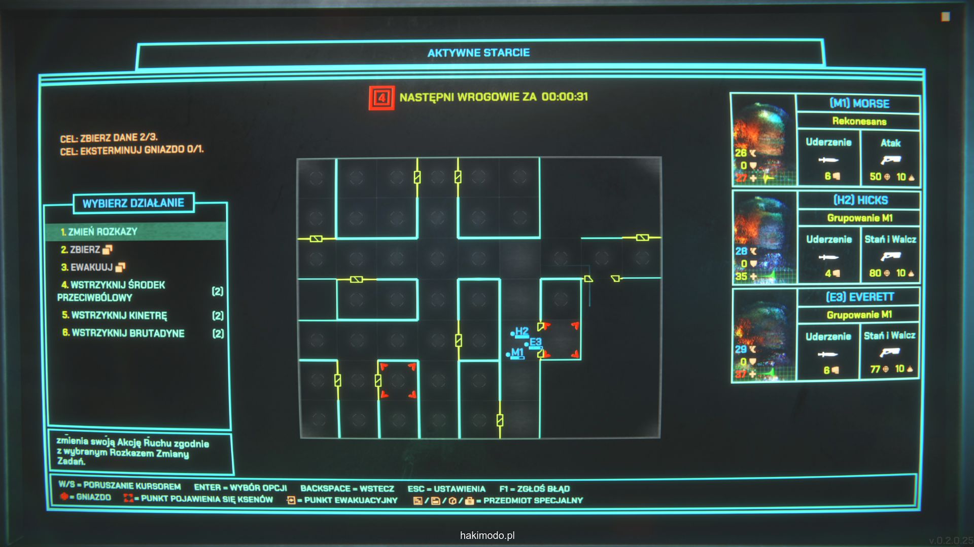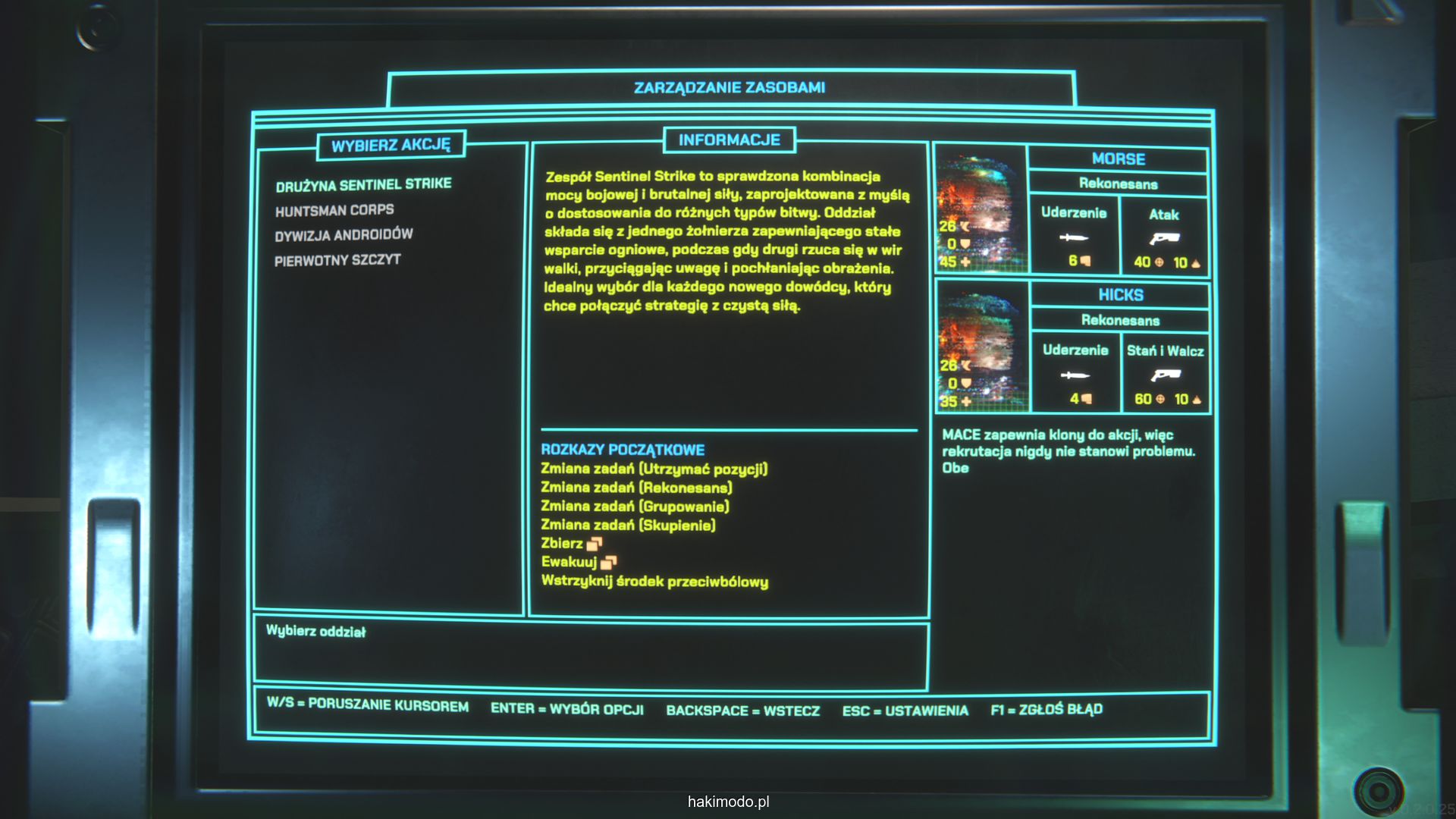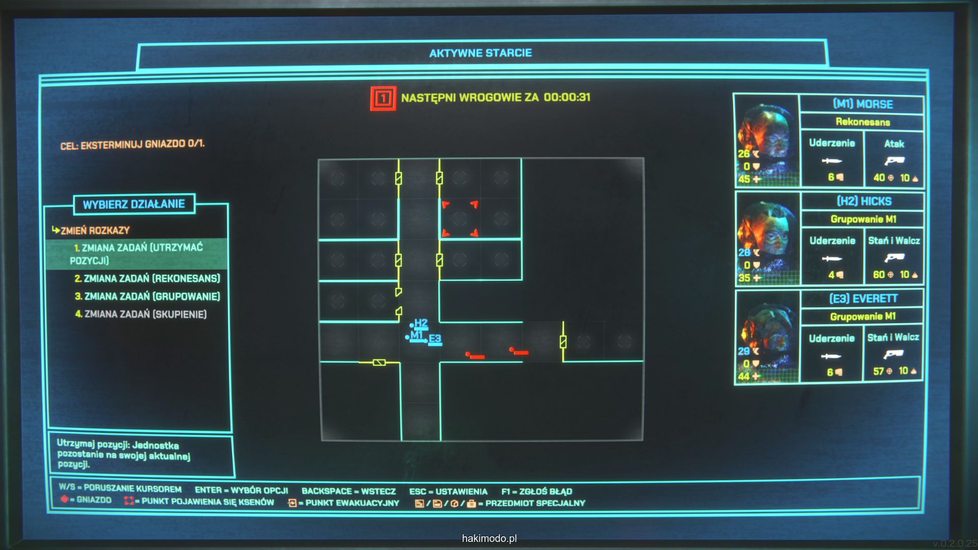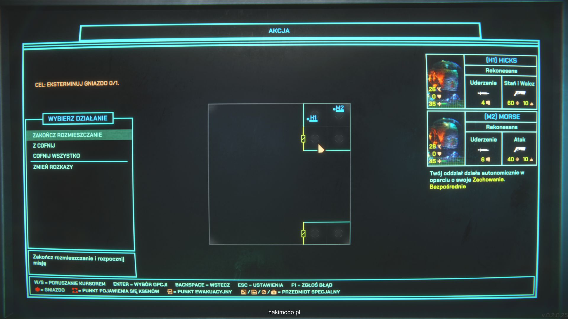 Podobnie jak z powyższym przykładem gra nie oferuje precyzyjnych komend pokroju “wejdź do pomieszczenia po lewej” czy “cofnij się o trzy pola”, więc trzeba działać w ramach dostępnych komend i narzędzi, przewidując zachowanie agresywnej jednostki. Komenda “Utrzymanie pozycji” zatrzymuje oddział w miejscu i dobrze sprawdza się przy odpieraniu naporu nadciągających grup. “Rekonesans” nakazuje jednostce odwiedzić wszystkie nieodkryte jeszcze pomieszczenia, odsłaniając „mgłę wojny”. „Grupowanie” sprawia, że wskazany żołnierz podąża za wybraną osobą, utrzymując zwartość. „Skupienie” kieruje oddział do ostatniej lokalizacji celu, czyli miejsca ostatnich działań. Nigdy jednak nie wiemy jaką ścieżkę przejścia obierze nas oddział i gdzie też się uda – co czasami generuje element zaskoczenia i jednocześnie powoduje, że niekiedy jesteśmy zaskakiwani rozwojem akcji.